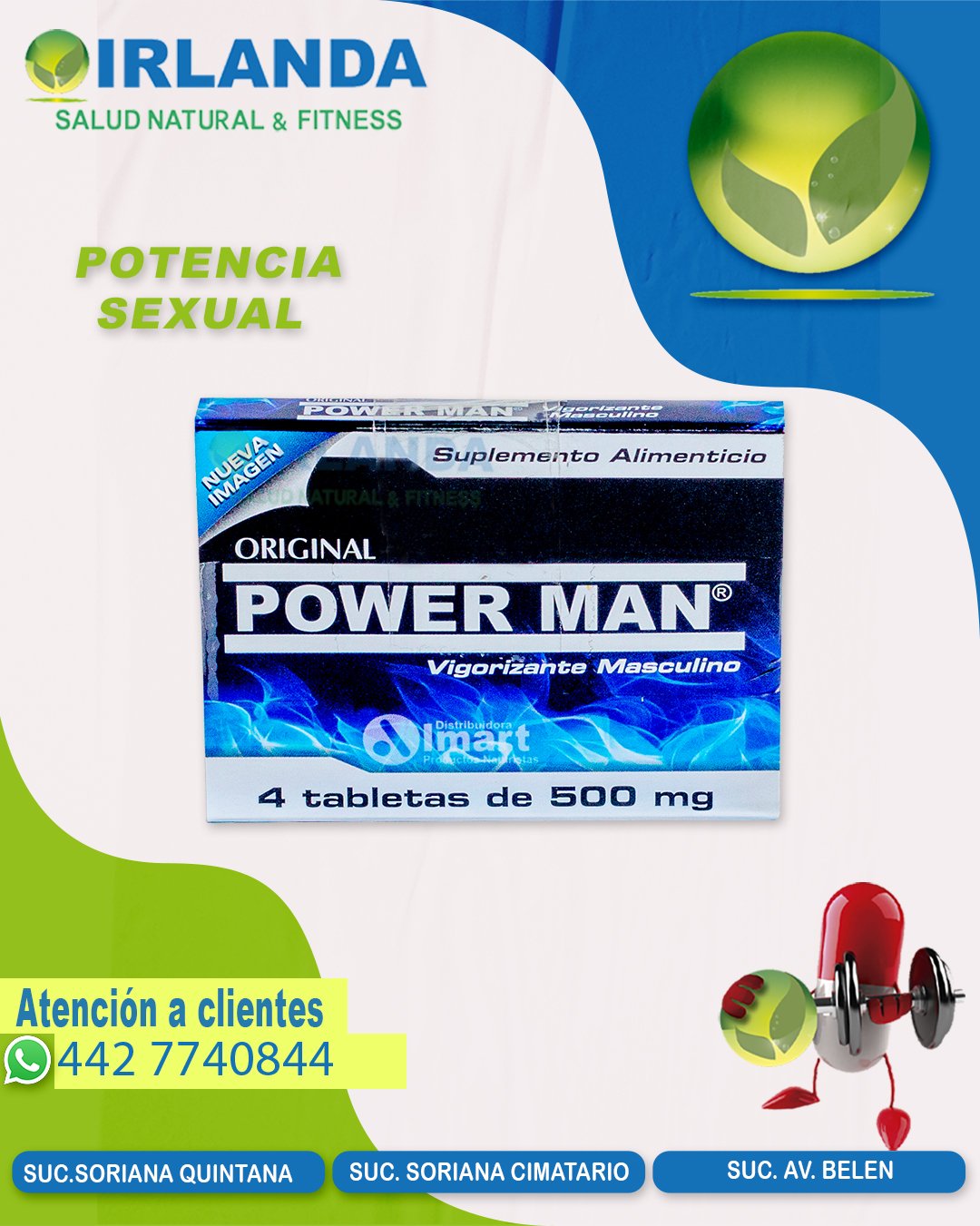 Power Man es un suplemento vigorizante diseñado para hombres que buscan mejorar su rendimiento y energía de forma rápida y segura. Su fórmula concentrada a base de hierbas y extractos naturales actúa cuando más lo necesitas.